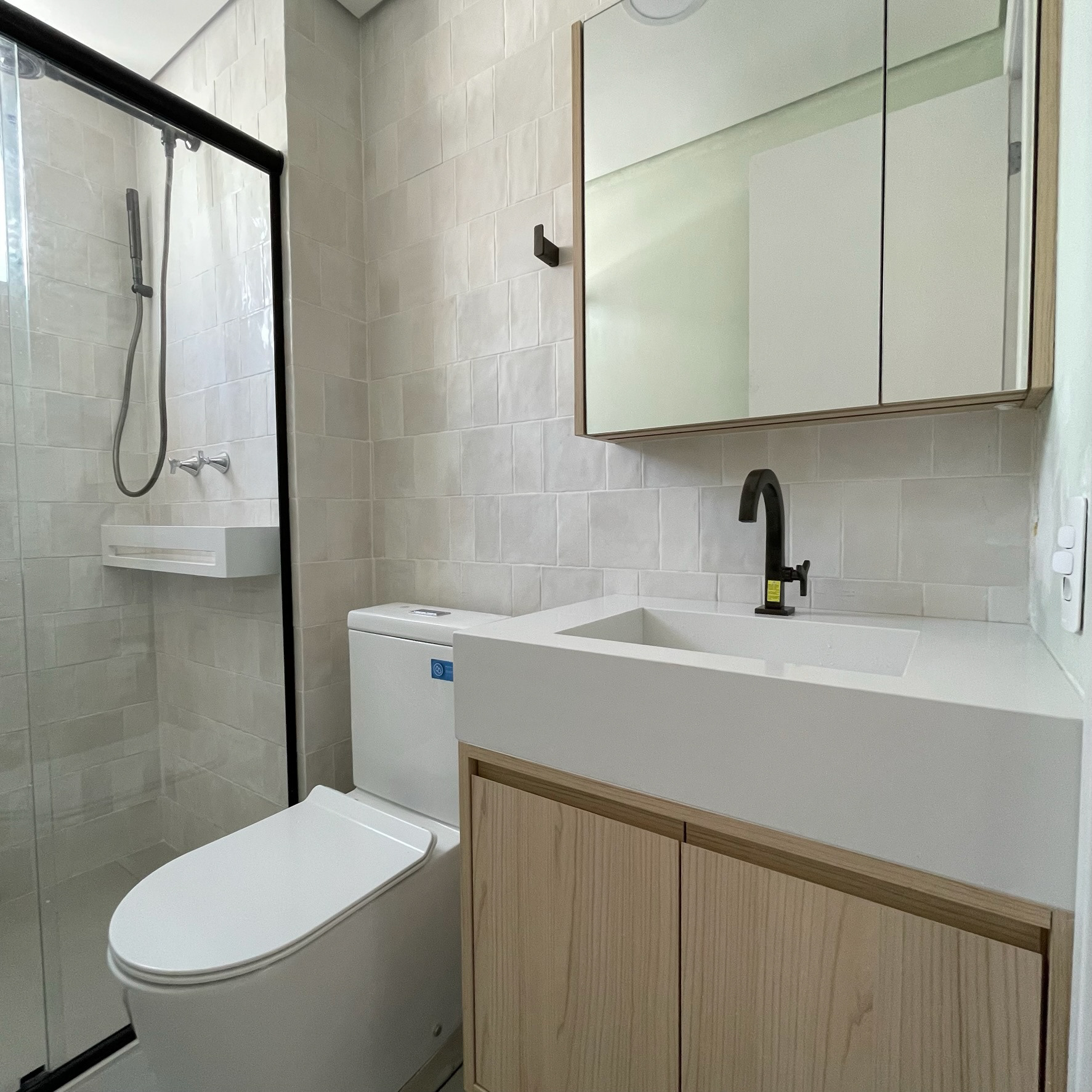 The Apê L&V has a story a little bit different from the other projects here, in this apartment we had a very important role in materializing the client's dream, that was developed by her friend, the architect Vitória Oliveira.